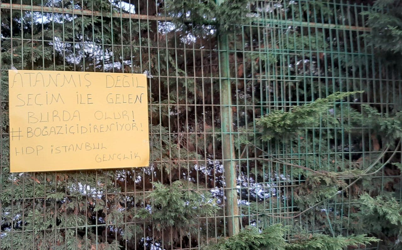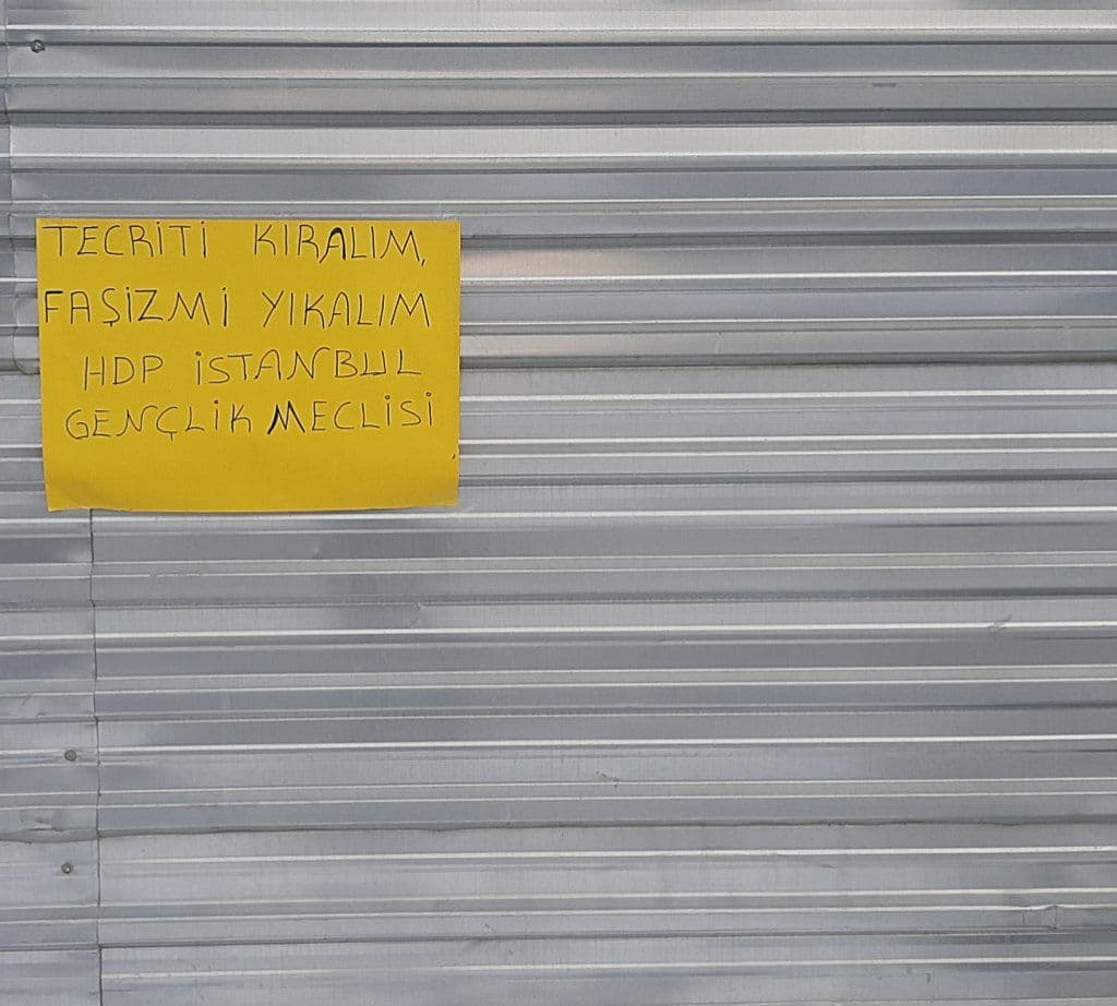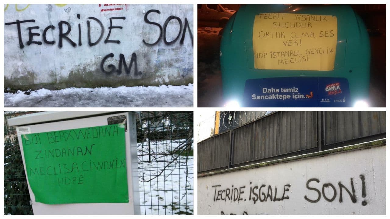 Navçeya Sultanbeyliyê de ciwana ji bo piştgiriya grevê birçîbûnê û li dijî Qayumê Boğazîçiyê pankart daliqandin.