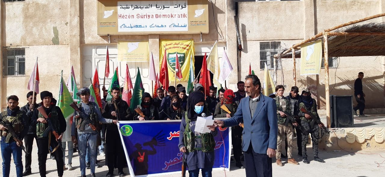 Endama Yekitiya Jinên Ciwan a li Reqayê Aye El-Elî bi navê şandeyê daxuyanî xwend, berxwedana QSD`ê ya ku li eniyên navçeya Eyn Îsayê, silav kir.