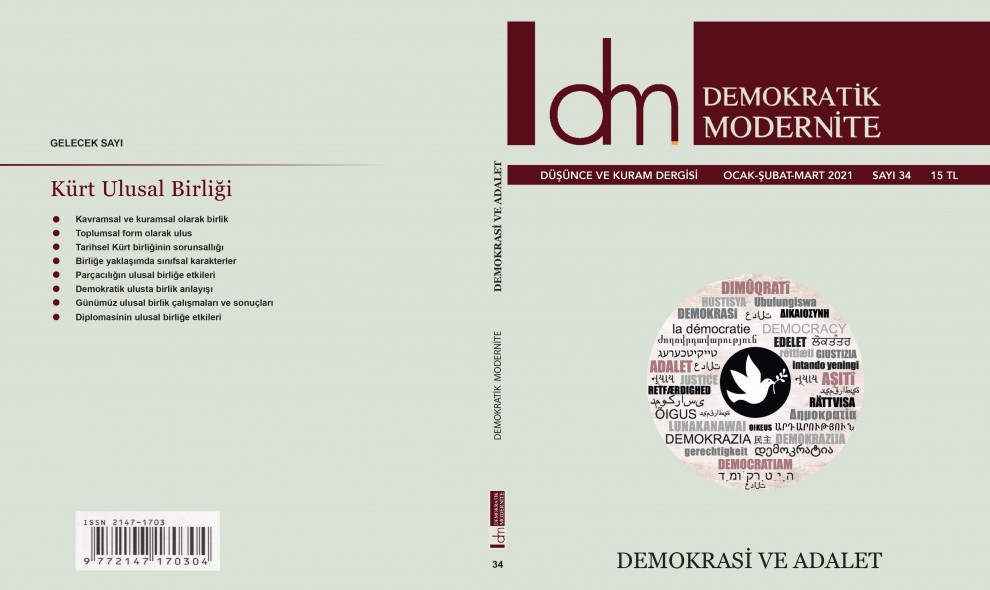 Hêjmara 34’emîn a Kovara Raman û Bîrdozî ya Modernîteya Demokratîk ku ji 3 mehan carekê tê çapkirin ya meha Çile, Sibat û Adarê derket. Kovar bi sernavê “Demokrasî û Edalet” hat çapkirin û di refên pirtûk û kovaran de cihê xwe girt. Kovarê vê hêjmarê cih da van nivîs û nivîskaran: