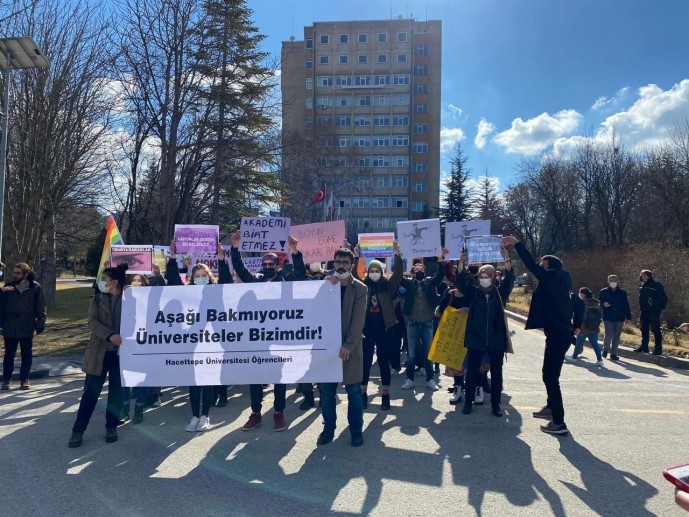Xwendekarên Zanîngeha Hacettepeyê, ji bo piştevaniya berxwedana xwendekarên Zanîngeha Bogazîçiyê ya li dijî rektorê qeyûm dan destpêkirin, li Zanîngeha Hacettepeyê daxuyanî da çapemeniyê. Xwendekaran di daxuyaniyê de pankarta “Em li erdê nanêrin. Zanîngeh yên me ne!” vekirin.