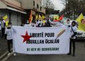 Di meşê de pankartek ku bi zimanê Fransî ‘Ji Abdullah Ocalan re azadî’ li ser hatibû nivîsandin’ û aleke mezin a Tevgera Ciwanên Şoreşger hate hildan, bê navber dirûşmên ‘Bijî Serok Apo’, ‘Bê Serok Jiyan Nabe’ û ‘Fermandar Egîd dijî, PKK şer dike’ hate qîrkirin.