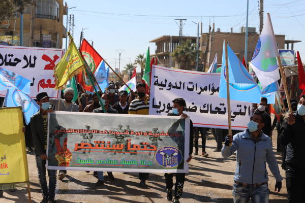 Çalakî bi qîrîna dirûşmên “Bi can û bi xwîn em bi te re ne QSD”, “Şehîd namirin”, “Jin, jiyan, azadî”, “Em dixwazin bi rengekî azad bijîn” û “Bila dewleta Tirk a dagirker ji herêmê derkeve” bi dawî bû.