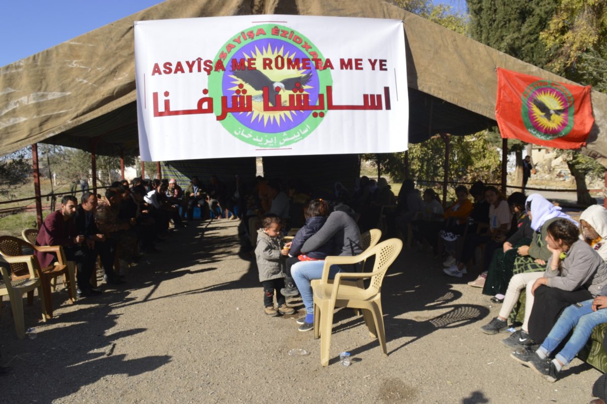 Welatiyên Şengalê di çerçoveya li dijî peymana Bexda û Hewlêrê ya li ser Şengalê de, bi armanca xwedîderketina Asayişa Êzidxanê, li pêşiya Navenda Asayişa Şengalê kon vedane.