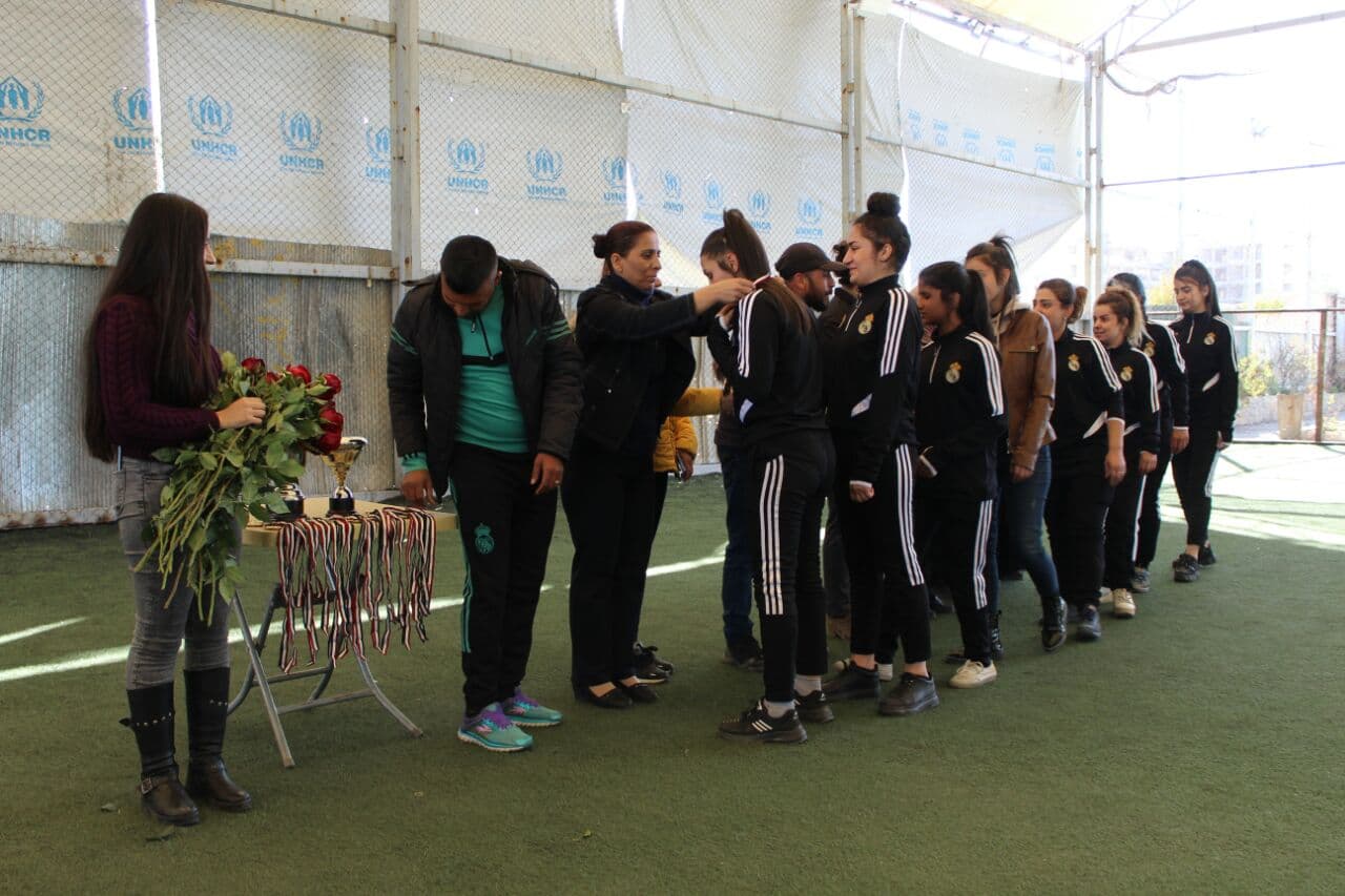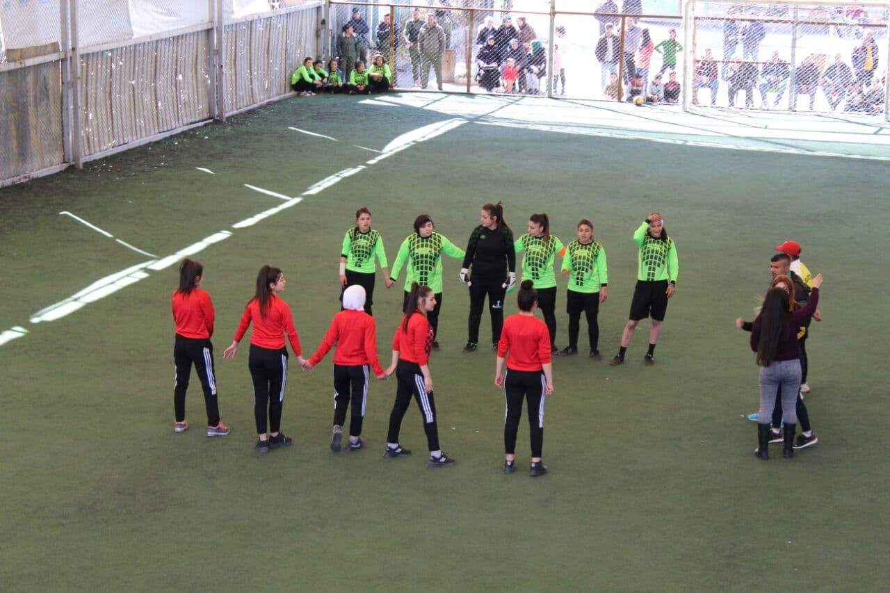 Îro jî bi heman sedemê ve jinên ciwan li Şêxmexsûda Helebê maçeke futbolê pek anîn.