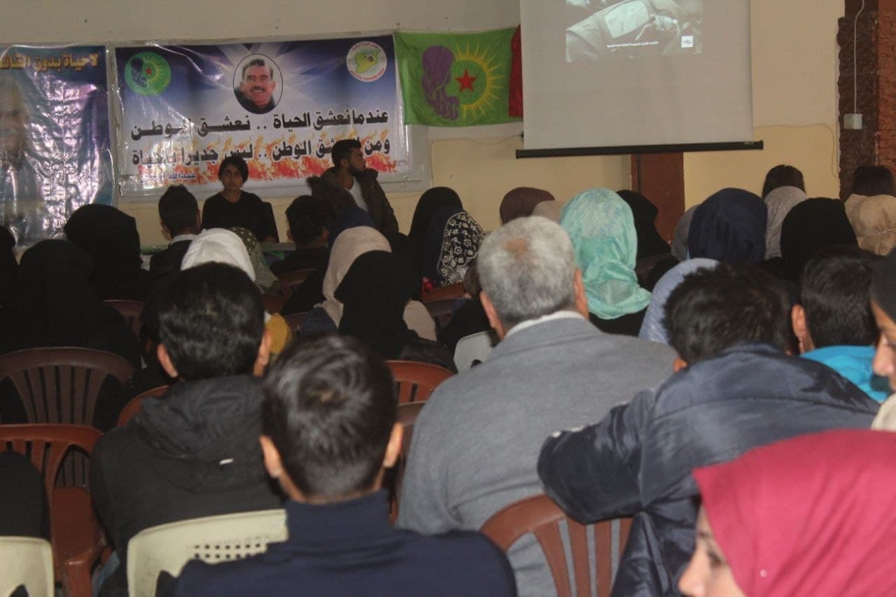 Reqa – Tevgera Ciwanên şoreşger û Yekîtiya Jinên Ciwan, li Reqayê ji bo bîranîna şehîdên komkujiya Helepçeyê, li Hola Al-Taj, ya başûrê bajarê Reqayê, semînerek li dar xistin.
