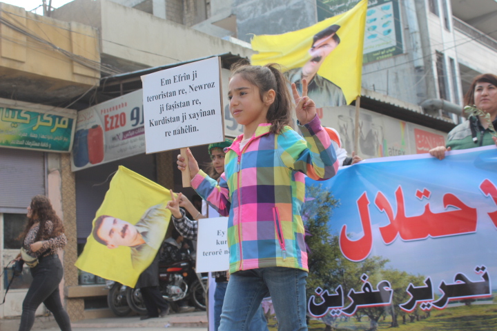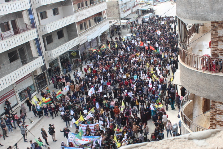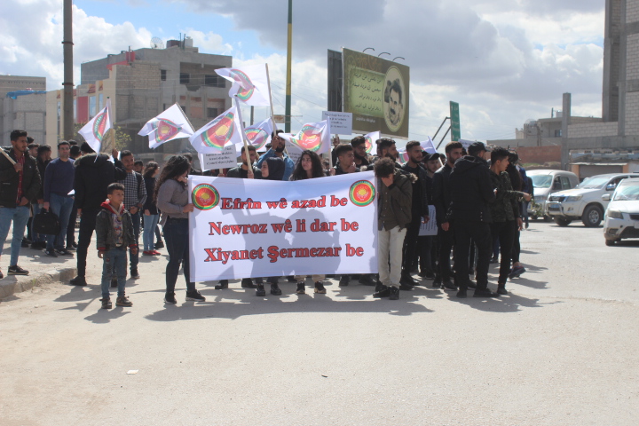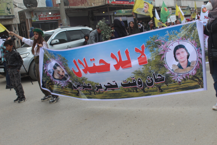 Meşa Protestoyê Ji bo salvegera dagirkirina Afrînê, ji dewara Qarmûtî destpêkir heya Siyahî li ba Netewen Yekbuyî bi dawî bû. Di nav meşê de jî nerazîbûnên gel ji bo rewşa Serok Apo jî hatin ziman.