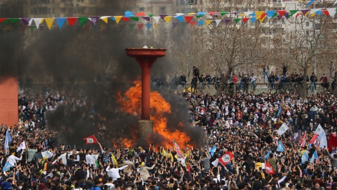 Endamên Meclîsa Ciwanan a Partiya Demokratîk a Gelan (HDP) li Xaçerêya Yenîhalê li hev civiyan û bi rengekî girseyî ber bi qada Newrozê ve meşiyan. Ji gelek nuqteyên bajêr bi hezaran kes hîn jî ber bi qada Newrozê ve dimeşin.