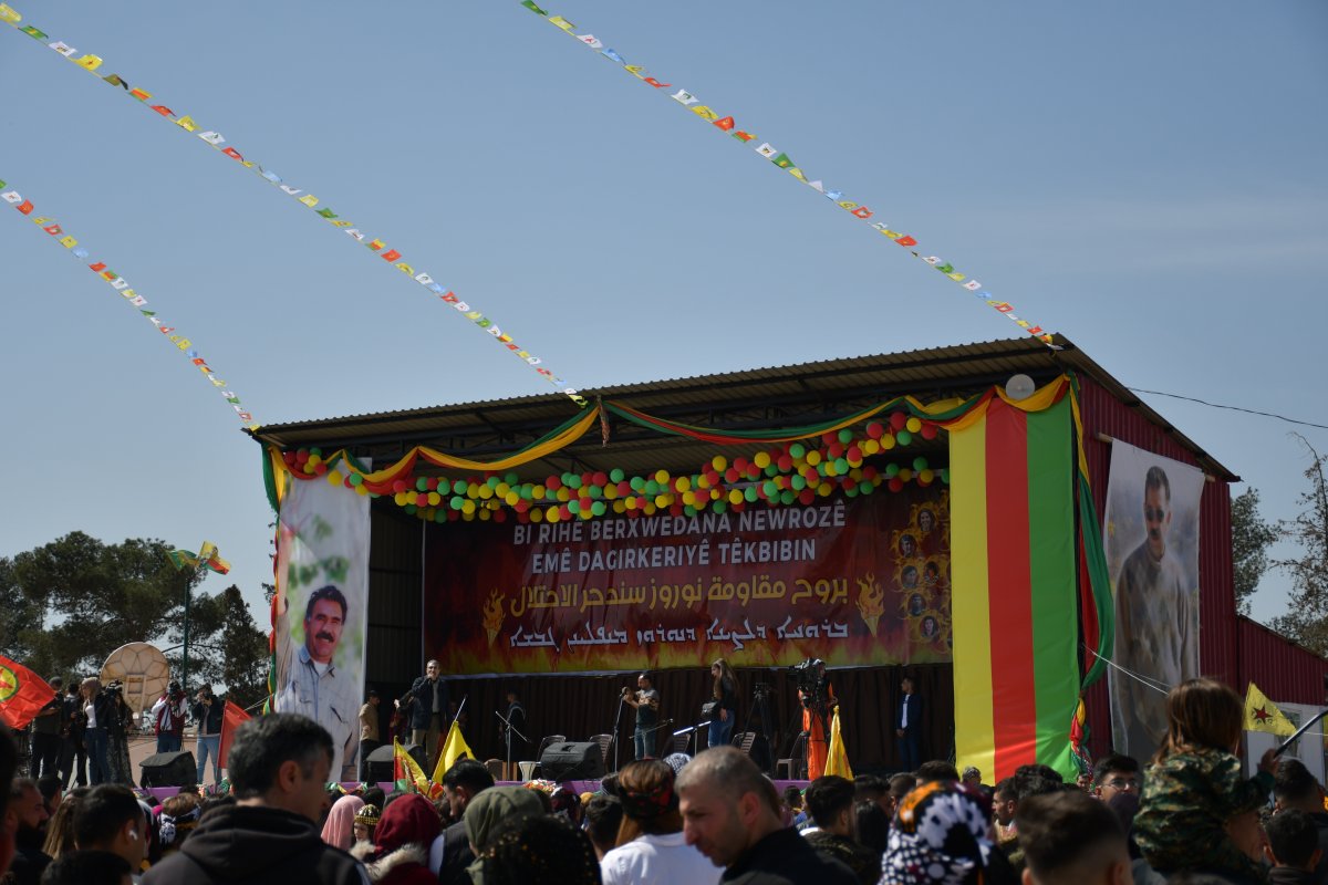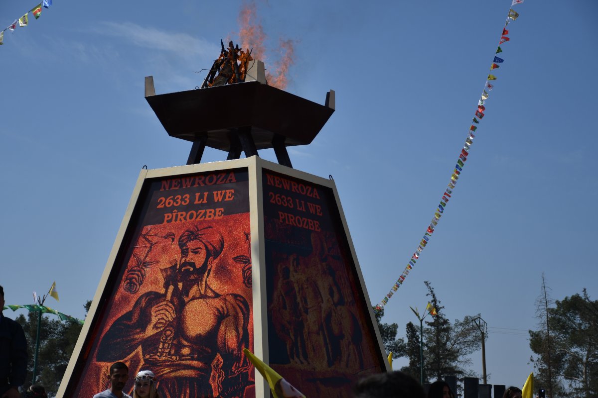 Paşê li ber tîlîliyên jinan û silgonên ” Bijî Berxwedana Garê”, ” Bijî Berxwedana Eyn Îsa” û “Bê Serok Jiyana Nabe” dayîkên şehîdan agirê Newrozê pê xistin.