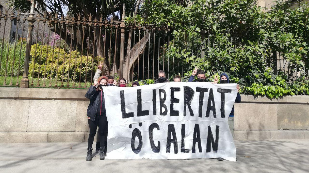 Di vê çarçoveyê de komek ciwanên enternasyonalîst li navenda paytexta Katalûnya Bercelona pankarta ‘Ji Ocalan re azadî’ vekirin.
