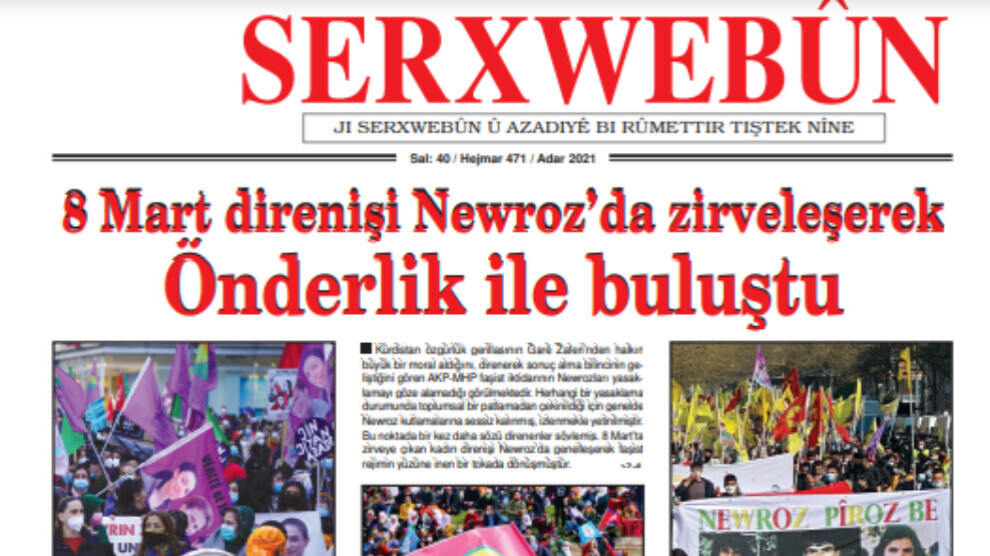 NAVENDA NÛÇEYAN – Rojnameya Serxwebûnê pêvajoya siyasî di rûpelên destpêkê de nirxand û tespîta wê yekê kir ku li dijî polîtîkaya tecrîdê ya li ser Rêberê Gelê Kurd Abdullah Ocalan gel qada Newrozê dagirt û bi vî rengî bersiv da. Ji doza girtina HDP’ê heta cihê Tirkiyeyê li nava polîtîkaya hevsengiyê ya DYE-Rûsyayê, her wiha bi serketina Garê re serweriya psîkolojîk a pêngava ‘Dem dema azadiyê ye’ gelek mijar hatin nirxandin.