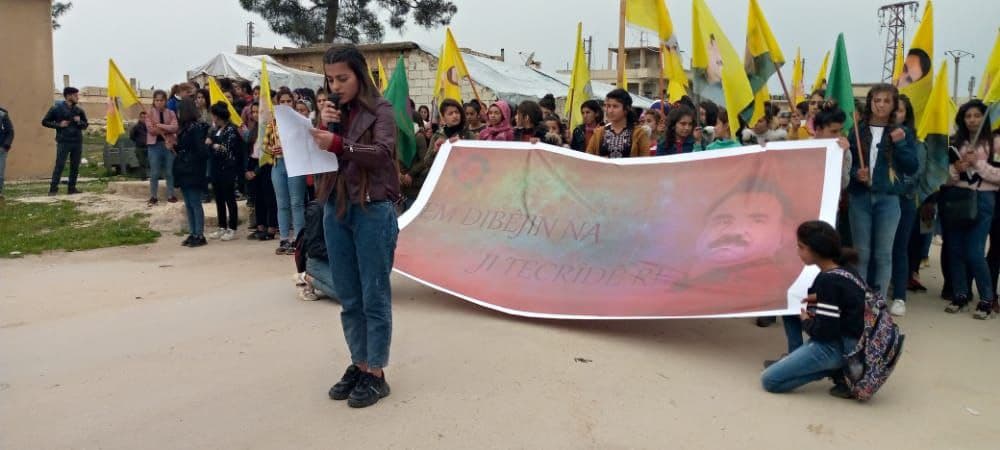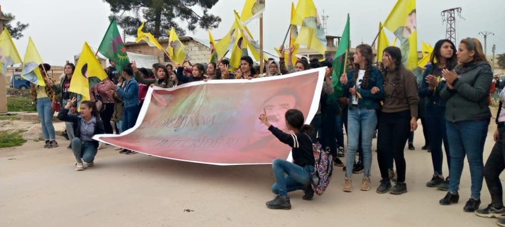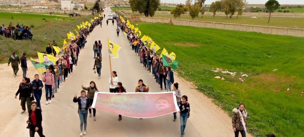 ŞEHBA – Endamên Yekîtiya Jinên Ciwan a Herêma Firatê ji bo protestokirina tecrîda li dijî Rêberê Gelan Abdullah Ocalan meşek lidar xist. Jinên ciwan ku li ser rêya sereke ya gundê Marata yê navçeya Ehdasê ya kantona Şehbayê bûn, posterên Rêberê Gelan Abdullah Ocalan û alên Yekîtiya Jinên Ciwan hilda bûn.