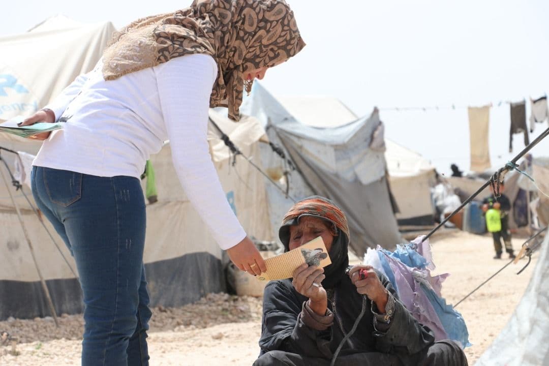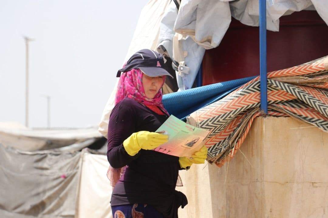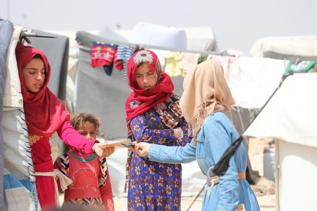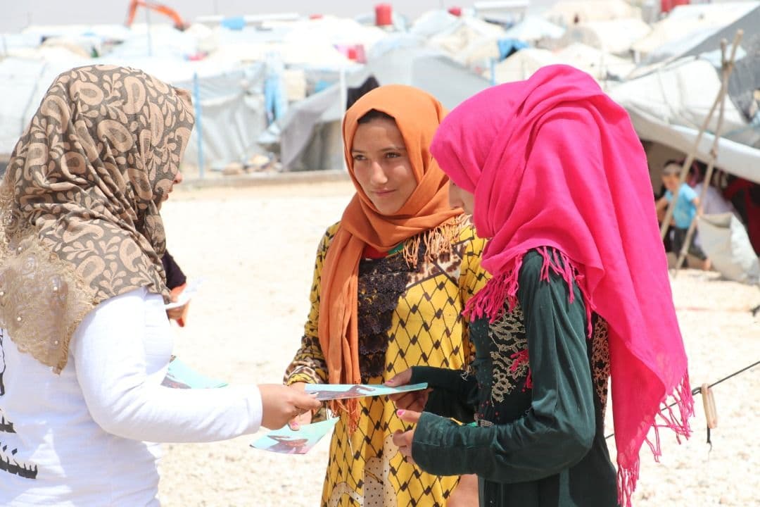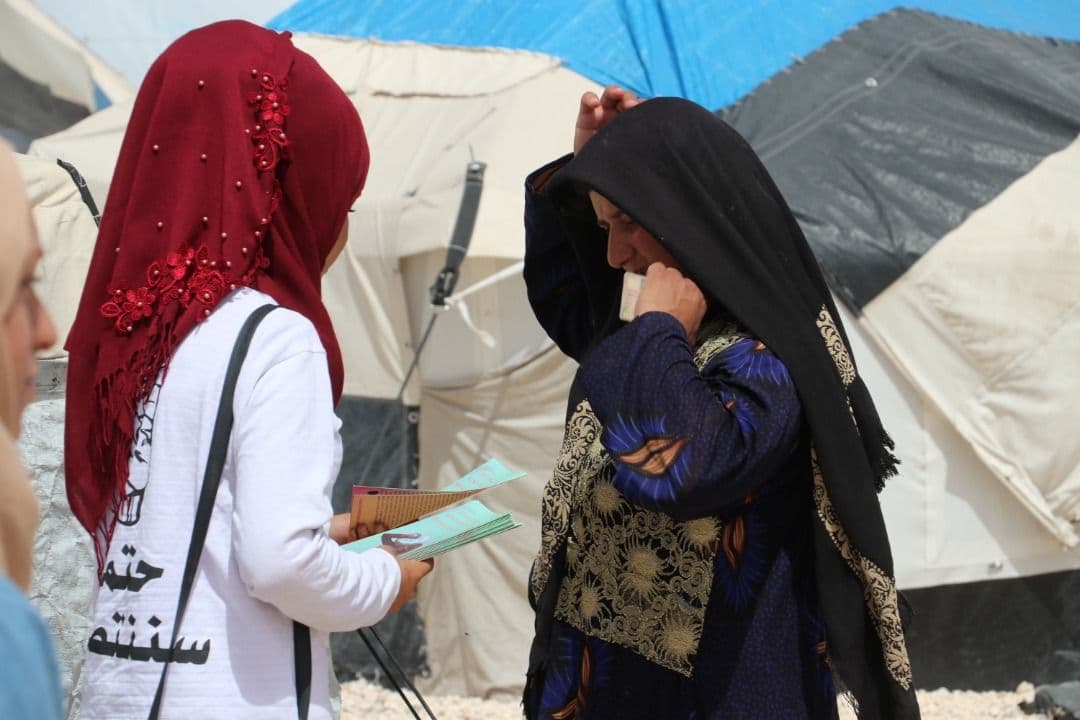 TEBQA – Jinên Ciwan li Kampa Mehmûdlî yê li Tebqayê belavokên “parastina cewherî” belav kirin.