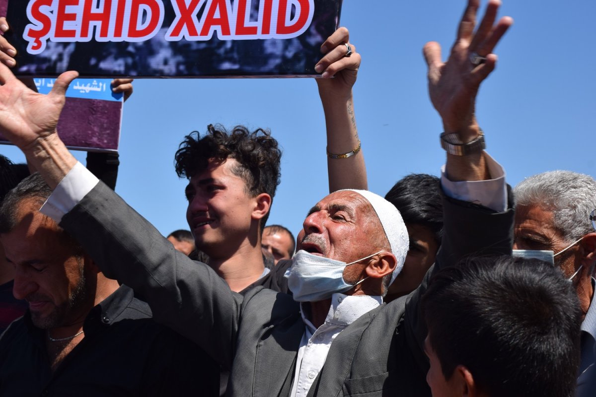 Merasîma oxirkirinê li Goristana Şehîd Delîl Saroxan bi rêzgirtinê dest pê kir. Paşê, hevserokê Meclisa Malbatên Şehîdan a bajarê Qamişlo Mehûsm Hesen axivî û diyar kir ku tevî belavbûna vîrusa Koronayê li herêmê lê şêniyên bajarê Qamişlo qebûl nekirin ku şehîd Xalid bi tena xwe derbasî goristana şehîdan bibe.