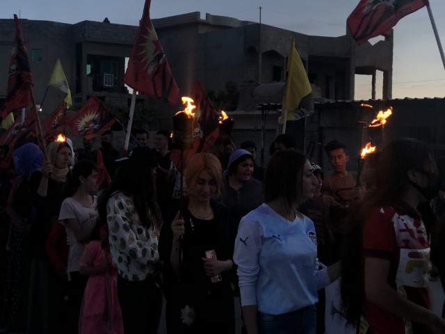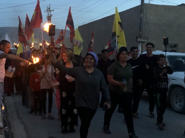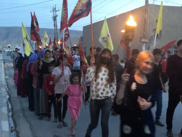 Meşê bi pêşengiya Yekîtiya Ciwanên Şengalê (YCŞ) û Yekîtiya Jinên Ciwan ên Êzidî (YJCÊ) li ber Meclîsa Gel a Borikê destpê kir. Di meşê de posterên Rêberê Gelan Abdullah Ocalan hatin hildan û dirûşmeya, “Bijî berxwedana gerîla’ hate berz kirin.
