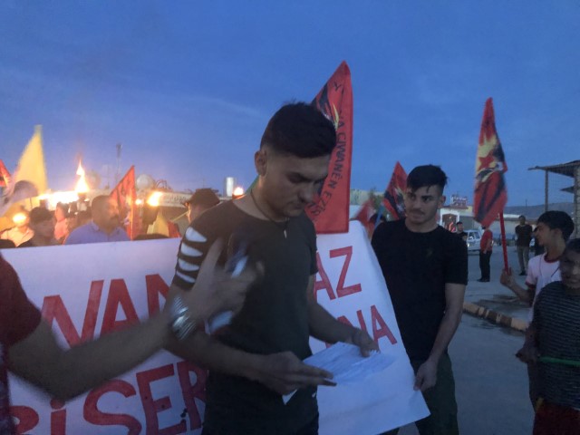 Piştî ku meş giha Daqa Navenda Komelgehê, li ser navê YCÊ û û YJCÊ’yê Hekîm Şengalî daxuyanî xwend. Di destpêka daxuyaniyê de berxwedana gerîla hate silavkirin û wiha hate gotin: “Dewleta Tirk a dagirker û malbata Barzanî carek din li ser xaka Başûrê Krıdistanê dest bi dagirkerinê kirine. Dewleta Tirk bi armanca tinekrina fikir û ramanên Rêber Apo şerê xwe yê taybet û şerê qirkirina gelên azadîxwaz dide meşandin.