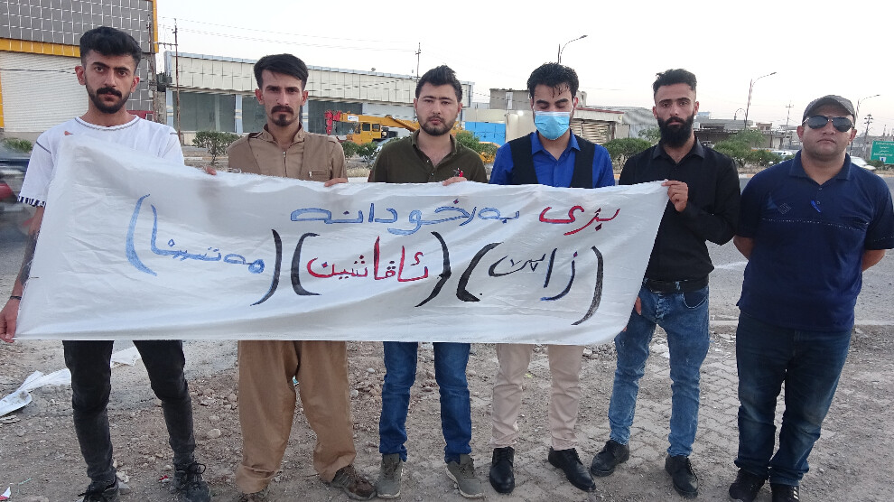 Ciwan li taxa Derwaze ya Kerkûkê, li ser rêya Kerkûk û Silêmaniyeyê ki hev civiyan û pankarta bi nivîsa “Zap, Avaşîn û metîna” hildan.