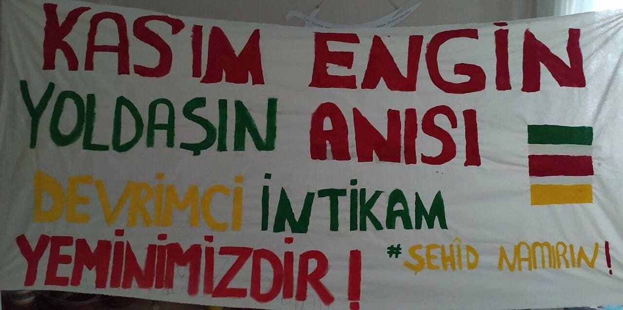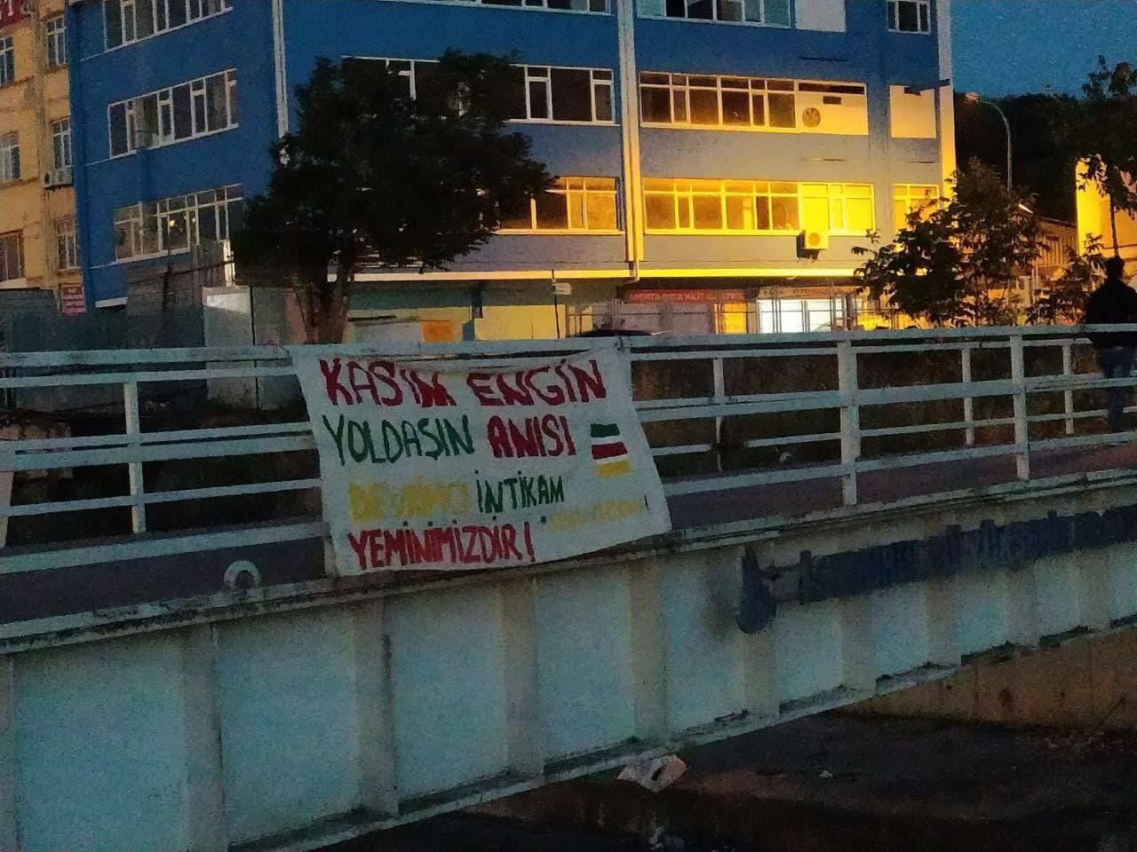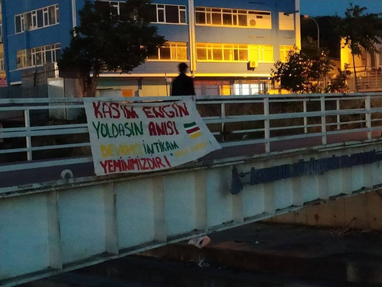 Endamê Komîteya Rêvebir a PKK-ê, ku di 27-ê Gulana Paşiyê ya sala 2020-an de hate şehîd kirin, bi minasebeta yekemîn salvegera şehadeta Endamê Komîteya Navendî Kasım Engin (İsmail Nazlıkul) li navçeya Kadıkoya Stenbolê pankartek daliqand.