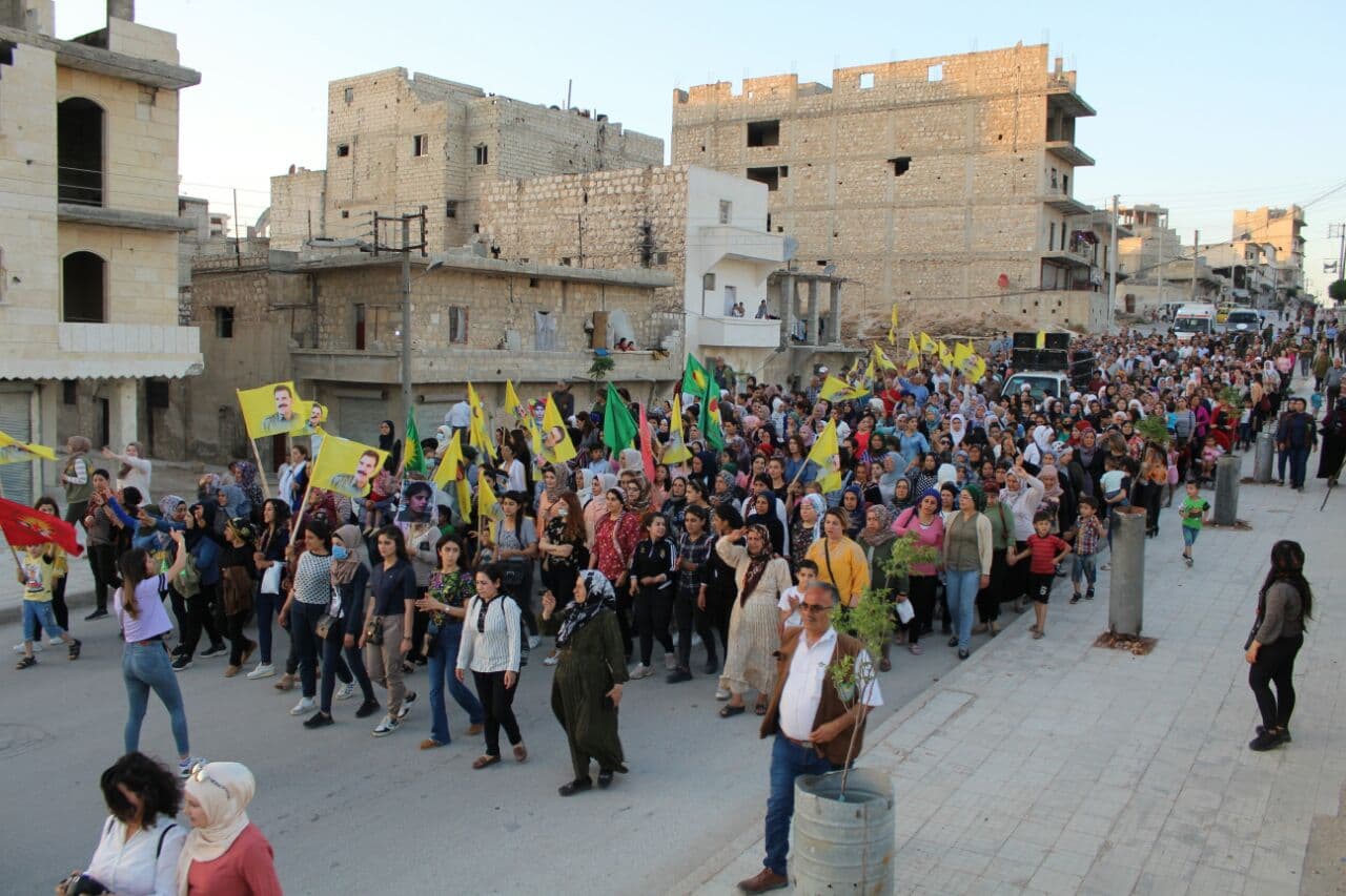 Meş bi beşdarbûna bi sedan ciwan, jinên ciwan û gel ve li ber navenda Ciwanên Şoreşger yê Taxa Şêx Meqsûdê ve destpê kir. Di meşê de gel û ciwan alên Tevgera Ciwanan û Jinên Ciwan û wêneyên Rêberê Gelan Abdullah Ocalan hilgirtin. bi avêtina sloganên berxwedana Gerîllayan silav dikin meş lo kolanên taxê geriyaye.