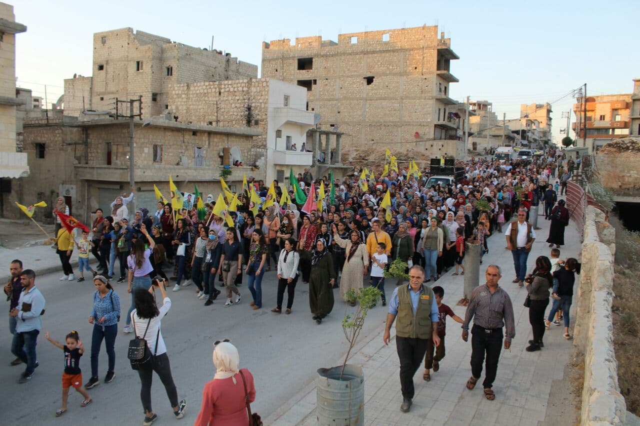 Heleb – Bi armanca şermezarkirina êrîşên dewleta Tirk a dagirker li ser herêmên Avaşîn, Zap, Metîna yên başûrê Kurdistanê û ji bo piştgiriya berxwedana Gerîlayan li çiyayan. Tevgera Ciwanên Şoreşger û Yekîtiya Jinên Ciwan meşek girseyî organîze kirin.