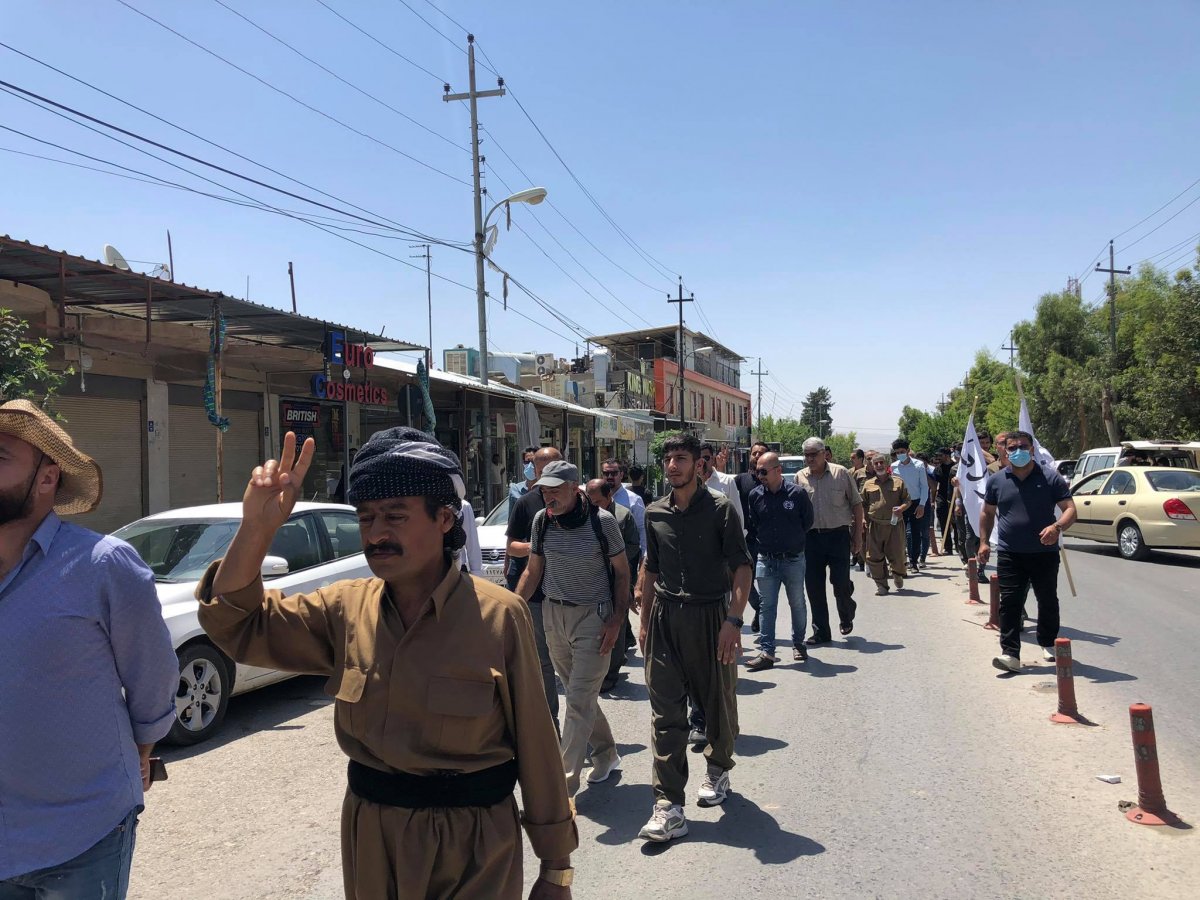 BEHDÎNAN – Welatiyên Başûrê Kurdistanê bi pêşengiya Ciwanên Welatparêz ên Başûrê Kurdistanê û Jinên Ciwan ên Başûrê Kurdistanê li dijî dagirkeriya Tirk, ji Koyê heya Behdînanê meşa mertalên zindî da destpê kirin. Di van kêliyan de gel dirûşmên, “Biçe derve biçe derve, artêşa Tirk biçe derve” berbi Hewlêrê ve dimeşin.