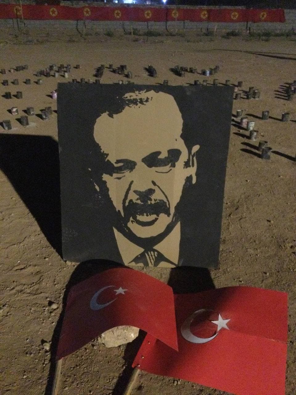 Piştî axiftina Bozan posterê Erdogan hat şevitandin û pîrozbahî bi govend gerandinê bi dawi bû.
