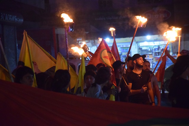 ÇİLAXA – Bi dehan ciwanên şoreşger ên navçeya Çilaxa ya kantona Qamişlo li pêşiya herêma Inaş a rojavayê navçeyê kom bûn. Ciwanan wêneyên rêber Abdullah Ocalan û alên ciwanên şoreşger rakirin û diruşmên “Bijî berxwedan gerîla û na ji xiyanetê re” berz kirin.