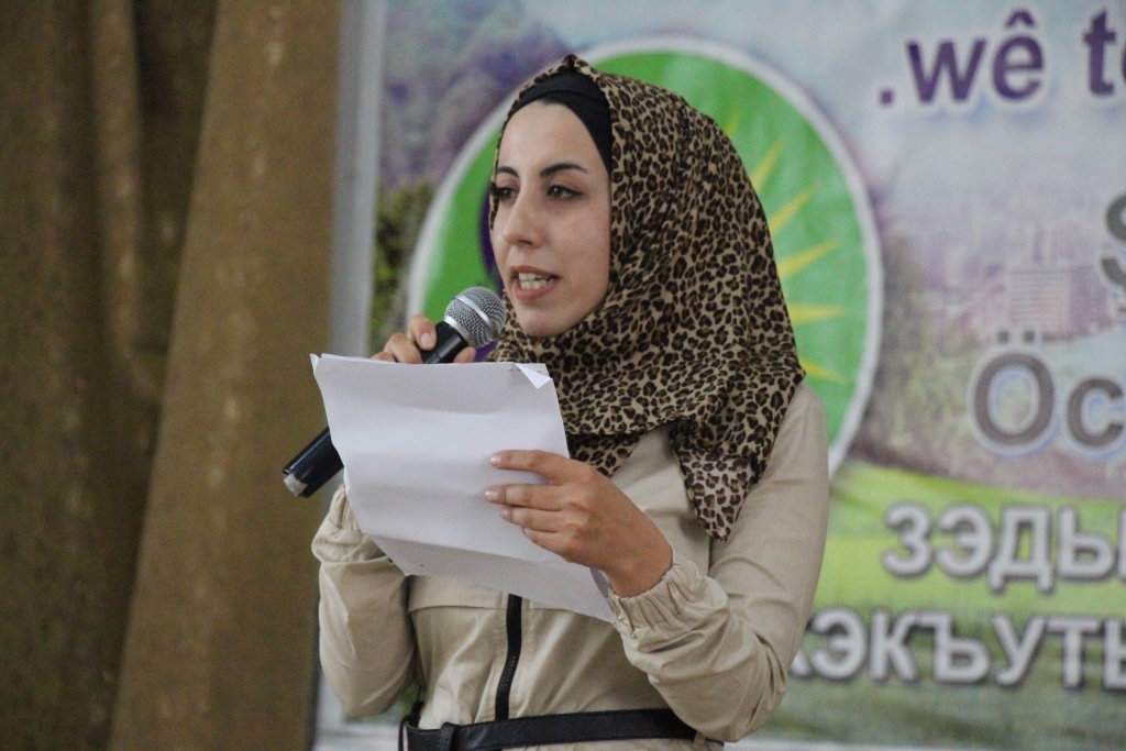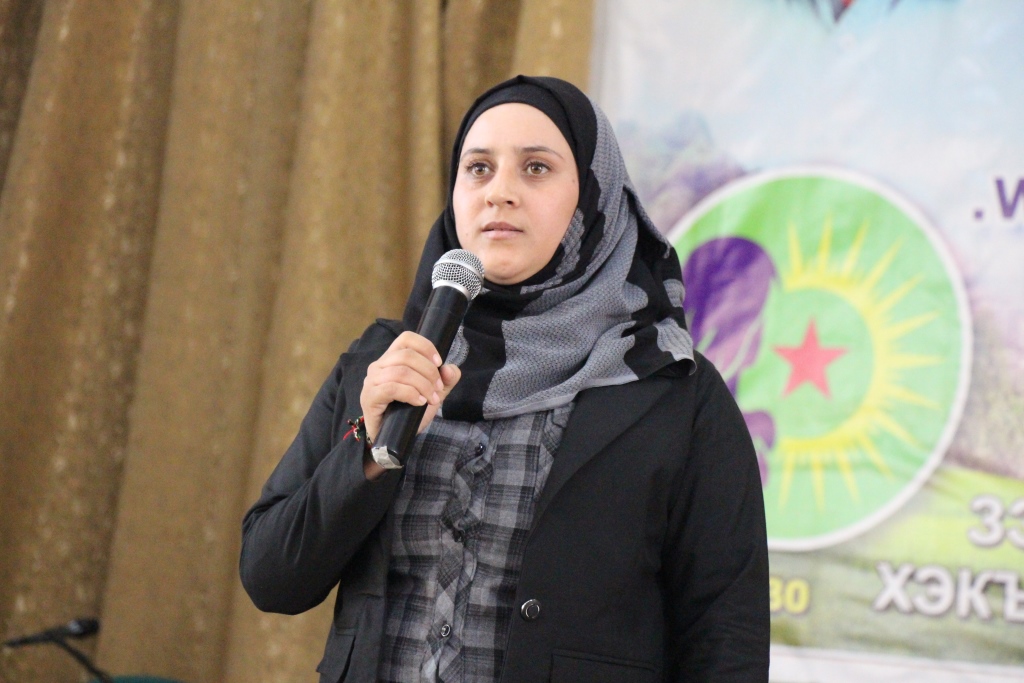 Bi navê Kombûna Jinên Zenûbiya endama Meclisa Jinan a Minbicê Nesrîn El-Elî axivî û ev xal rêz kirin: “Jinên ciwan hêza bingehîn û pêşeng a civakê ne, tevî rewşên dijwar ên ku tê re derbas dibin û siyaseta ku jinan dike armanc jî, da ku fikirê tune bikin, lê jin bi hêz in.”