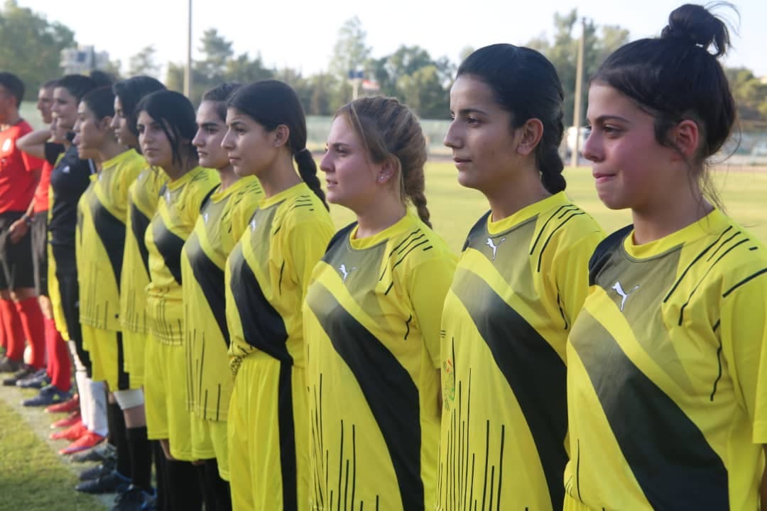 QAMIŞLO – Li Qamişloyê di pêşengtiya Jinên Ciwan de di bin slogana “Ji tundiya li ser jinê re na” de li ser asta Bakûr û Rojhilatê Sûrî turnovaya jinan a Fotbolê hate vekirin. Turnove li stada şehîdên 12’ê Adarê ya li Qamişlo hate vekirin.
