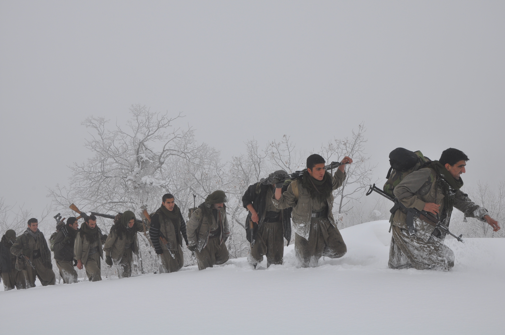 Em dîsa neçar man ku wî hevalî li şûn xwe bihêlin. Ji aliyekî ve destê me ji wan hevalan qut nedibû, lê ji aliyekî din ve jî em neçar diman ji bo ku hevalên din rizgar bikin, me rêya xwe didomand. Piştî ku rê êdî gelekî dijwar bû, me her carê hevalekî bi dorê xwe di berfê de rê vedikir. Her carê hevalek dikete pêş û berf diçirand. Her ku em hinekî dimeşiyan me guleyek diavêt û destên xwe li lûleya çeka xwe digerand da ku piçekî germ bibe.