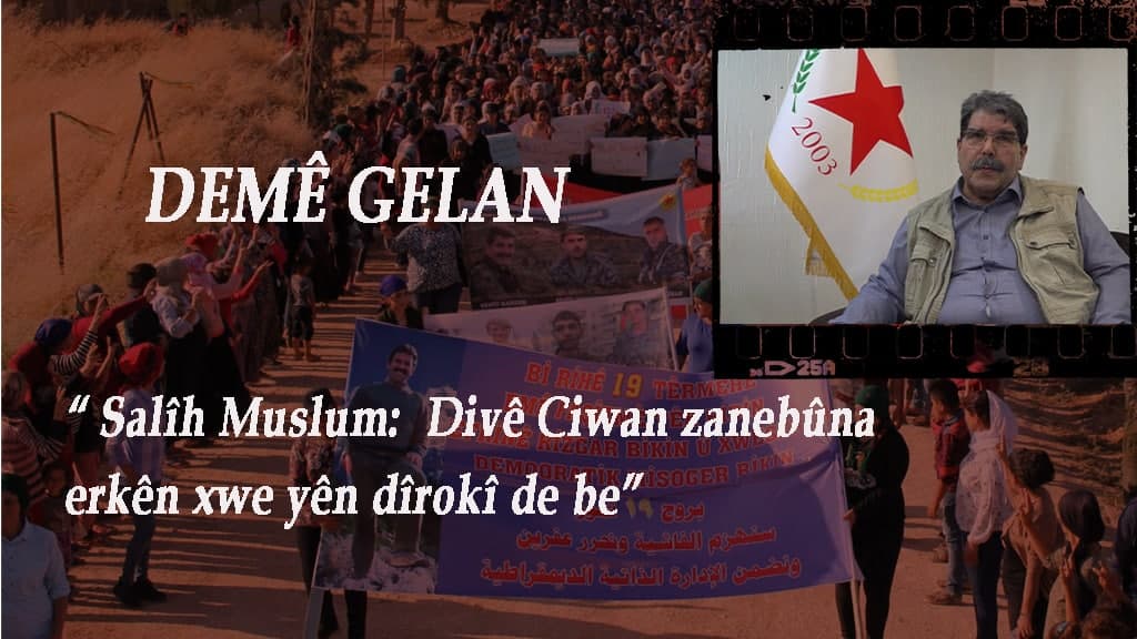 Xwestin Serêkaniyê dagir bikin.Cebhet el nusra û wan êrîşî Serêkaniyê kirin. Wê çaxê berxwedan çê bû. Heta niha jî hîn berdewam dike. Rejîm nema îja şerê me bû li hemberwan komên ku bi Tirkan ve girêdayî ne.Pişt re jî DAIŞ hat 2014 de. Berê da em wek PYD ji 2007 an kongreya me ya 3. de me mesela rêveberiyê îlan kiri bû. Çawa ku dikarin komîte bên avakirin, meclîs çê bibin, gel dikare biryarên xwe bidin. Hêdî hêdî me hinek meclîs çê kiri bûn. Ew meclîsên me jî rejîmê ku dizani me çê kiriye dihatin digirtin dikirin hindir de hata ku tobe dikirin berdidan. 2007 an de hewildanên me hebû em rêxistin bikin. Niha 19 Tîrmehê jî ew komîteyên me heyî ew mirovên me heyî ê wek rêveber dinav gel de partî û yên parastinê biryar bi giştî hat standin. Ji aliyekê de biryara gel bûku bê standin.Biryar ne ya şexsê kê bû ne ya PYD ê tenê bû. Giştî tê bûn. Me destpêkê da ji ber tiştekê me yê amadeyî tinne bû, derfeta me ji bo parastina me bû ne ji bo êrîşekê kesekê bikin. Bê plankirî bû. Me ji bo parastina xwe dikir. Ji ber vê pirsgêrêk derketin piştî 19 Tîrmeh ê valehiyrk çê bû. Rejîm tinne , kesek tinne, îdafe jî nehetiye çê kirin û şer jî ji aliyekê devam dike. Li aliyê leşkerê rêveberiya xwe hebû lê gel çi bike? Pirsgirêk li vir de bû. Îja em fikiriîn ku rêveberiya gel çê bibe. 2013 an ji xwe biryar hate standin rêveberî çê bû. Lê biryarê xwe de çawa bû? Wextê ku em dibêjin rêveberî, rêveberî jî saziyên xwe hene, civak heye, dikare civake birêve bibe. Rêya li pêş me ya dawî me xwe li ser gel dît. Bila gel xwe biryare xwe bide. Bila meclîs çê bibin. Li gundekê pirsgirêkek heyebila cem hevûdu runin 10 kes an 20 kes ê ku gund temsîl dikin an ruspine bila bên cem hevew bila runin bi xwe bifikirin vê pirsgirêkê çaw çareser bikin. Biryara wan jî tişta ku digehe rêveberiyê an li me dikeve wek partî em gazî wan dikin tişteka ew dixwazin. Bi vî awayî çê bû. Gel bi xwe radi bû, gel bi xwe pirsgirêka xwe dibîne bi xwe jî çareseriyê pêşnîyar dike, em pê re dibin ysk em pê re çareser dikin. Ji ber vî awayî hereketa me ji 2012 an de ku mesela rizgar kirina hereman de heta îro jî dîsa wisaye. Kesekê ku radibe bixwe biryarê dide, bêgel an tişte dî tinne. Ji her alî tu dê giraniya xwe didî gel. Gel dikare xwe rêve bibe, gel dikare biryar bide, gel dikare pisrgirêka xwe çareser bike, gel bi xwe pêşniyar bike . Yanî azadiya gel rêveberiyê rêveberî jî gel bixwe ye. Ev jî tiştekê pir serkeftiye. Hem barê rêveberiyê sivik dike. Hewce nake tu li Qamişlo runi pirsgirêka Kobanê çareser bikî. Gelê Kobanê bi xwe heye. Heta Kobanê jî hewce nake tu li bajêr runi çareseriyê ji gund re bibîni. Gund bi xwe çareseriya xwe dibîne, pêşniyar dike. Tişta ku bi xwe dikarin bikin dikin, yê ku nikarin bikinwê çaxê rêveberiya Kobanê dike an ê dî dike. Giştî bihevre girêdayiye lê tişta ku girîn li vir de baweriya gel hebe, biryara gel hebe gel dikare xwe rêve bibe. Ew gelê ku bi xwe piragirêkê jiyan dike ew bi xewe dikare çi pirsgirêke xwe hene li ser bifikirin û çareseiyê jê re bibînin. Niha ji xwe ew rihê ciwantiyê şoreşan çê dike, guhertinan çê dike. Belkî 19 Tîrmeh ê ne ciwan bi tenê xwe bûn em civak giştî li wir bûn. Lê pêşengî ciwan bûn . Hinek kal û mezinan biryar dan, nêrîn dan lê yê ku diçûn êrîş dikirin,şer dikir, parastin dikir ciwan bûn. Ji xwe şoreş ya ciwanane. Wexta ku mirov behsa şoreşê dike rihê ciwana tê bîra me, ew rihê fedakarî, ciwan hîn nexweşiyên cicak pê dikeve xirap dibe ew pê ne ketine, pak zelal difikirin, nirxên mirovahiyê ve girêdane.