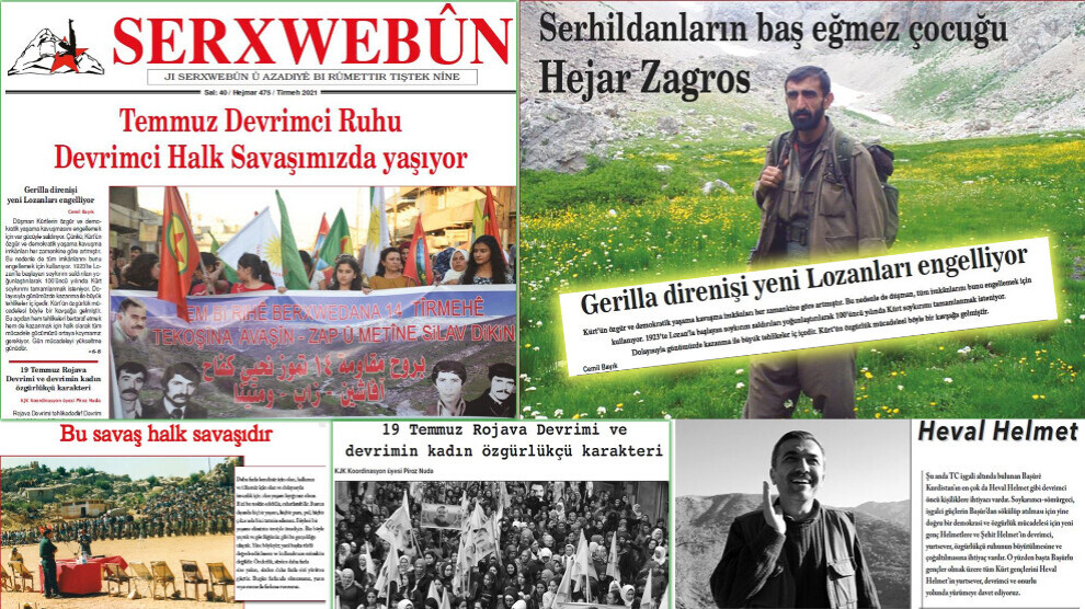 NAVENDA NÛÇEYAN – Hjmara Tîrmehê ya Serxwebûnê bi manşêta, ”Giyanê Şoreşger ê Tîrmehê di Şerê Şoreşgerî yê Gel de Dijî” kete ber destê xwendekaran. Di vê hijmara nû de geşedanên li ser Kurdistan, Rojhilata Navîn û Cîhanê têne nirxandin. Mijarên 14’ê Tîrmehê Berxwedana Rojiya Mirinê ya Mezin û 19’ê Tîrmehê Şoreşa Rojava li pêş in.
