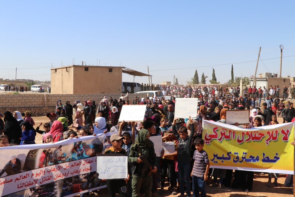 Di xwepêşandanê de Sultan Ebdulhemîd yek ji şêniyên gundê El-Ewseclî bi navê beşdaran axivî û got: “Em îro derketin da ku destwerdana dewleta Tirk di axa me de, red bikin û kiryarên dagirkeriya Tirk û çeteyên wê yên li dijî gelên Bakur û Rojhilatê Sûriyê şermezar bikin.”