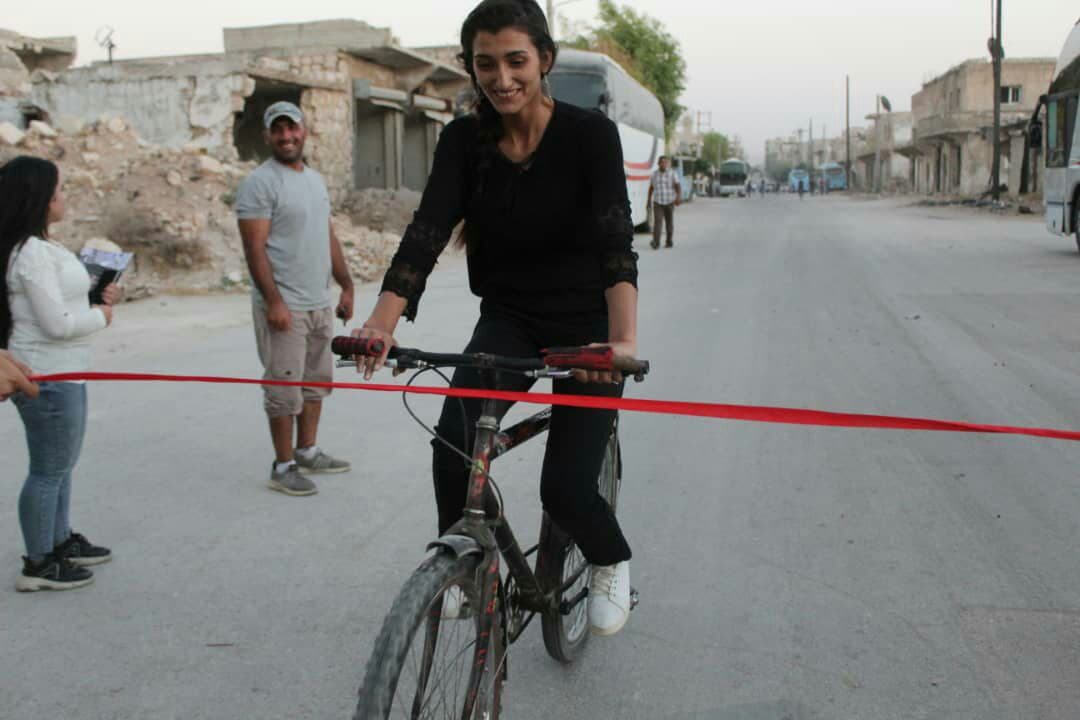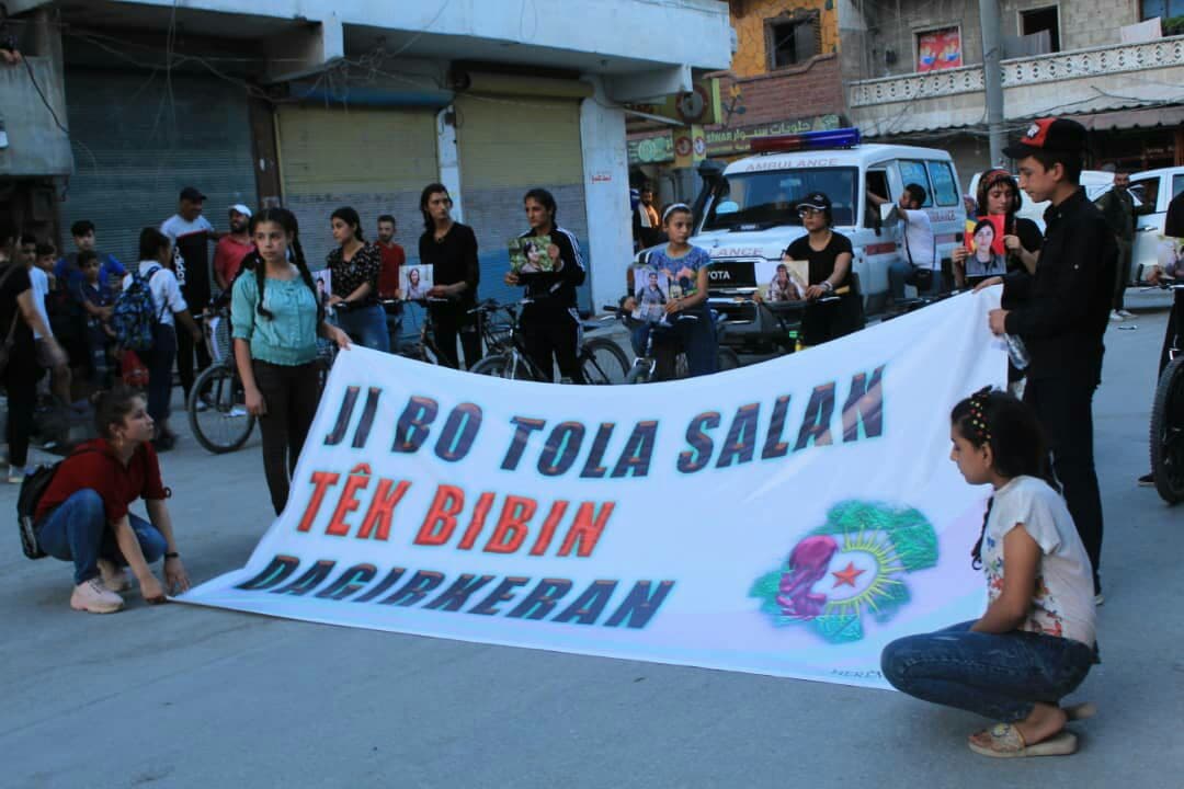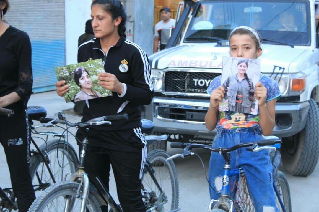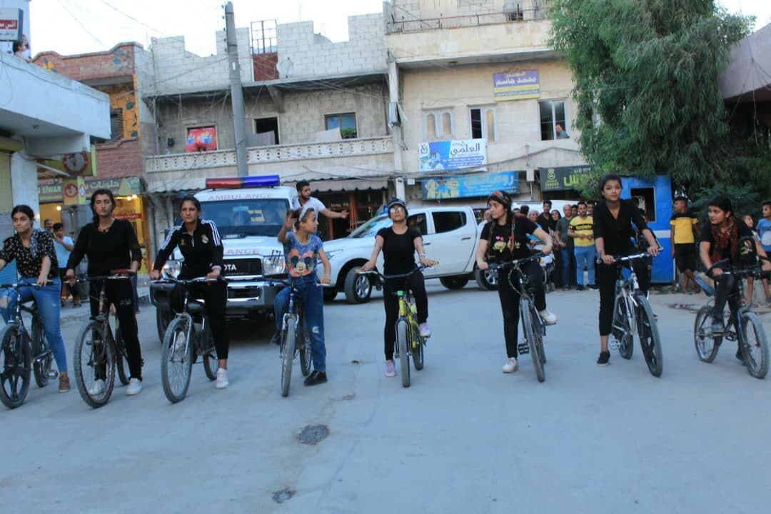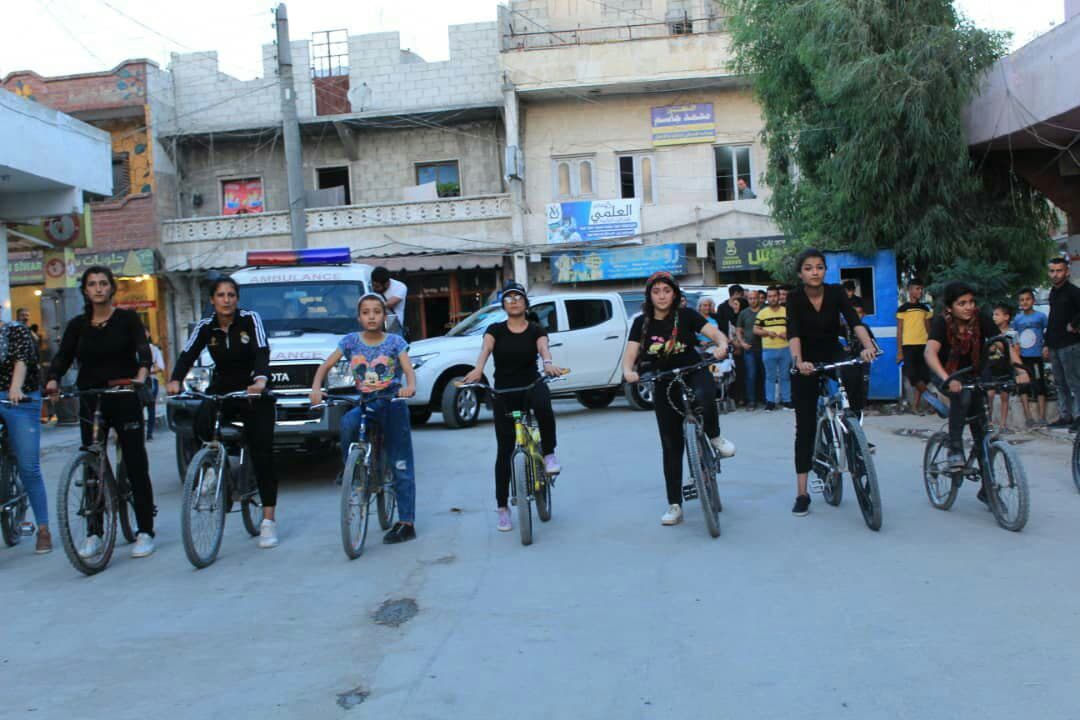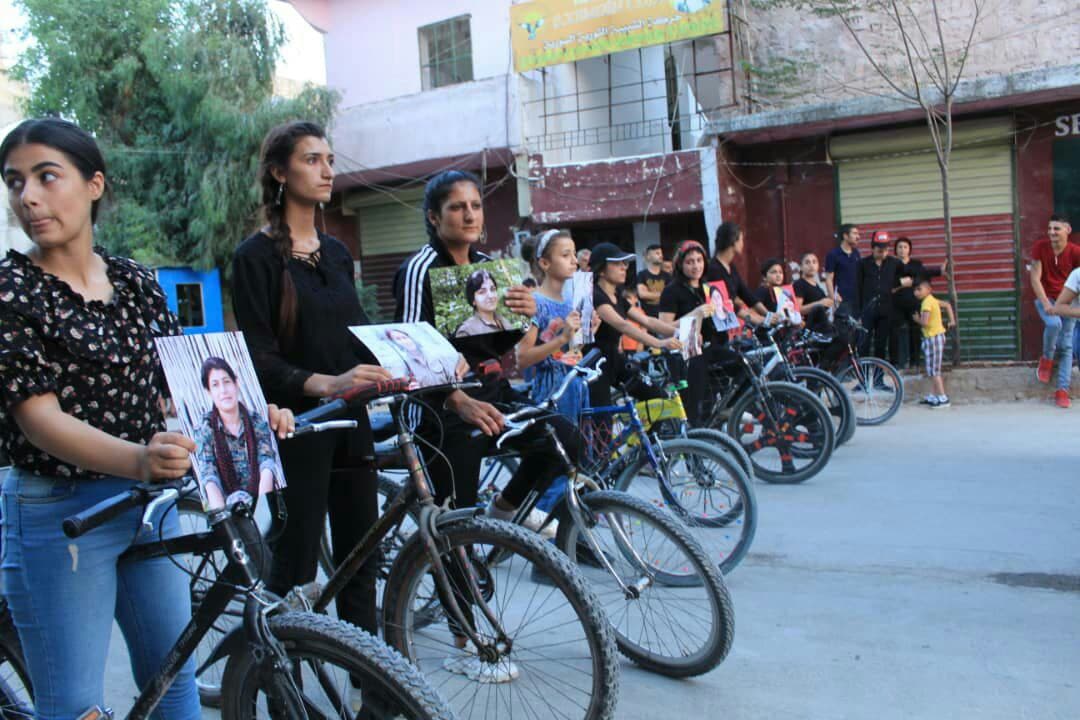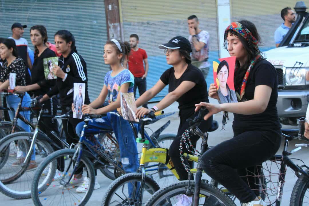 HELEB – Di çarçoveya çalakiyên bi diruşma “Ji bo tola salan têk bibin dagirkeran” de Yekitiya Jinên Ciwan bi hevkariya bi Nivîsgeha Yekitiya Werzîşê re pêşbaziya bisklêtan a jinan li dar xist.