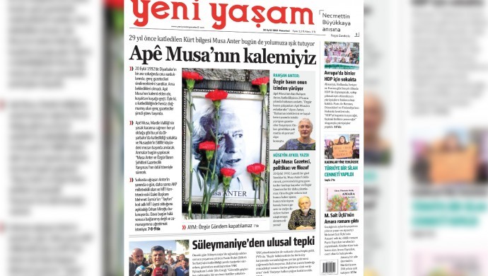 NAVENDA NÛÇEYAN – Rojnameya Yenî Yaşamê, zanayê Kurd Mûsa Anter (Apê Mûsa) yê di 20’ê Îlona 1992’yan de, li Amedê hat qetikirin kir manşeta xwe û bi bîr anî. Rojnameyê got, “Zanayê Kurd Mûsa Anter ê berî 29 salan hat qetilkirin, îro jî rêya me ronî dike” û manşeta “Em pênûsa Apê Mûsa ne” derket.