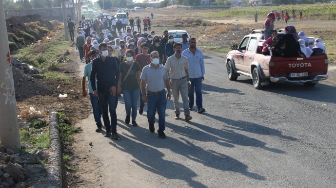 Piştî kar û barên definkirinê girseya li goristanê û ya li ber goristanê bi hev re dirûşmeya “Şehîd namirin” berz kirin. Piştî her du girse gihaştin hev hejmara zêde bû. Girse heya ber mala malbatê meşiya. Di meşê de malbatê got: “Ez dêya şehîda me, ez dêya Dilvîn im, ez natirsim.”