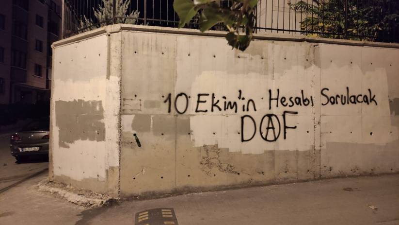 Li semtên Maltepe, Cebecî, Esat, Seyranbaglari û Yenîmahalle yên navçeya Çankaya ya Enqereyê, têkildarî 6’emîn salvegera Komkujiya Gara Enqereyê ya 10’ê Cotmehê li ser dîwaran nivîs hatin nivîsandin. 3 ciwanên endamên Federasyona Anarşîstên Şoreşger (DAF) ên têkildarî Komkujiya 10’ê Cotmehê nivîs nivîsandin hatin brevandin. Hat hînbûn ku Îsmaîl Arikan, Zeynep Ulger û Guney Akgun ên hatin binçavkirin, birine Miduriyeta Polîsan a Yenîmahalleyê.