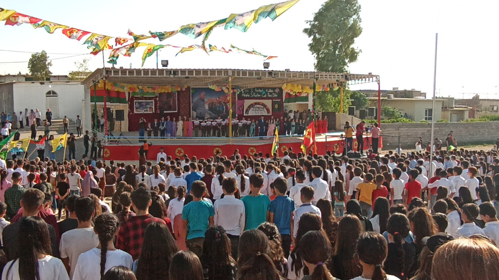 Şahî saet 14:00’an bi sirûda netewî ‘Ey Reqîb’ û deqeyek rêzgirtinê destpê kir. Zarokan bê navber dirûşmên ‘Bijî Serok Apo’, ‘Bê Serok Jiyan Nabe’ û ‘Bijî Berxwedana Gerîla’ qîr kirin.