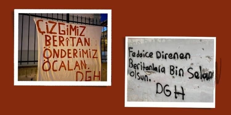 Di nivîsên DGH’ê ku li navçeya Sultangazî ya Stenbolê de siloganên “Ji Bêrîtanên li berxwedêran re hezar silav” û “Xeta me Bêrîtan, Rêberê me Ocalan” derketin pêş.
