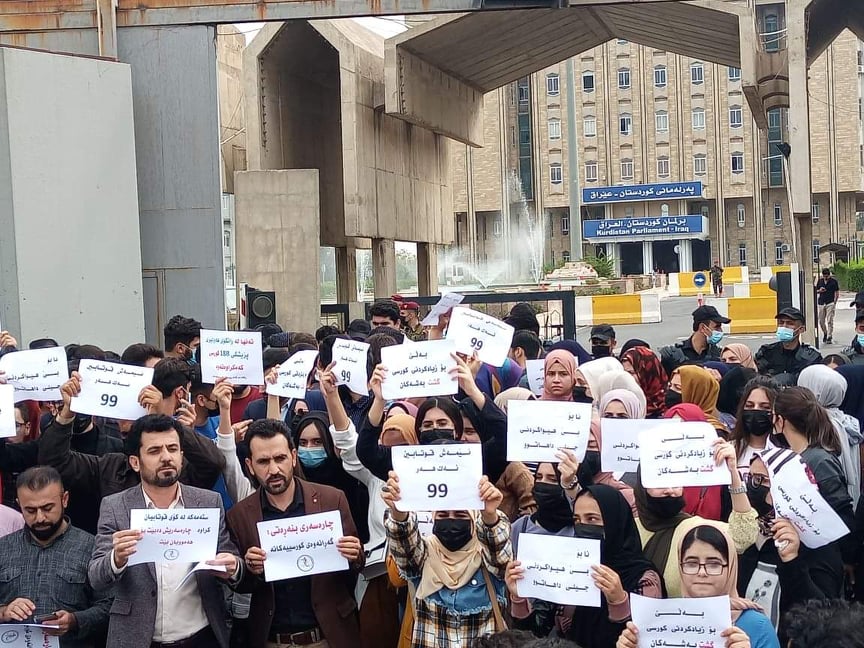 Li Hewlêrê jî li ber derê avahiya Parlamentoya Herêma Kurdistanê kombûn û dan zanîn ku ew biryara Wezareta Xwendinê red dikin. Xwendevanan xwest wana ji bo beşên dixwazin, bigrin.