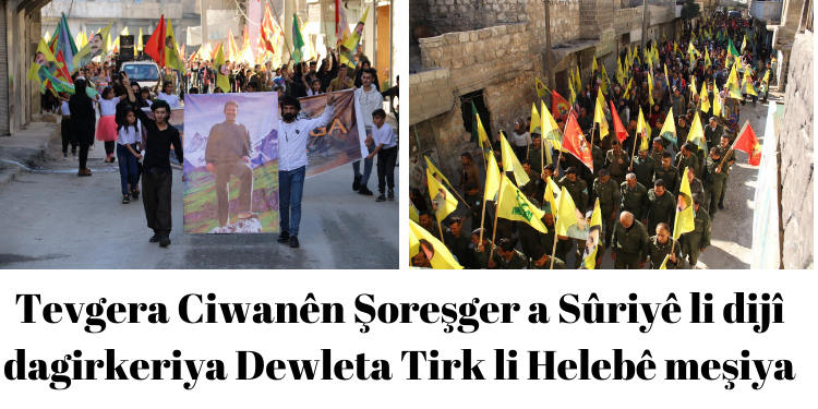 HELEB – Li ser banga Tevgera Ciwanên Şoreşger a Sûriyê, bi sedan şêniyên taxên Şêxmqsûd û Eşrefiyê bi meşekê êrişên dewleta Tirk a dagirker ên li ser Bakur û Rojhilatê Sûriyê û Başûrê Kurdistanê şermezar kirin. Di meşê de hevkariya PDK’ê ya bi dewleta Tirk re jî hate şermezarkirin.