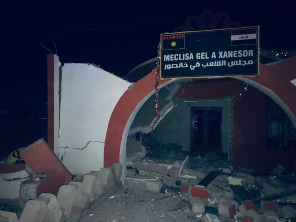 Balefirên şer ên dewleta dagirker ya Tirk avahiya Meclîsa Gel a Xanesor bobebaran kir. Êrîş li gorî saeta herêmê di saeta 19.30’an de pêk hat.