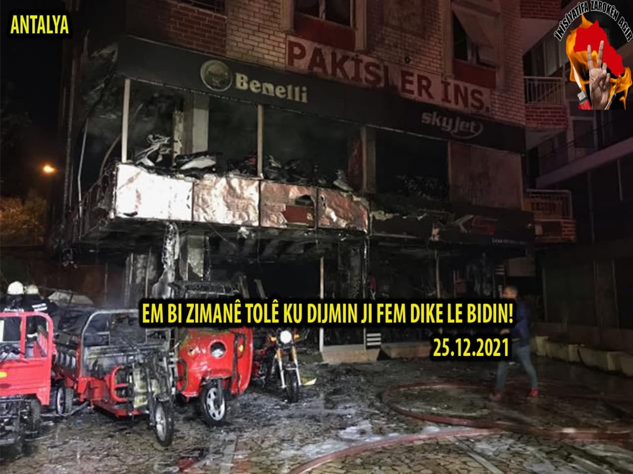 - 23.12.2021 Li Antalya Navenda Çand û Bazirganîye hat şewitandin.