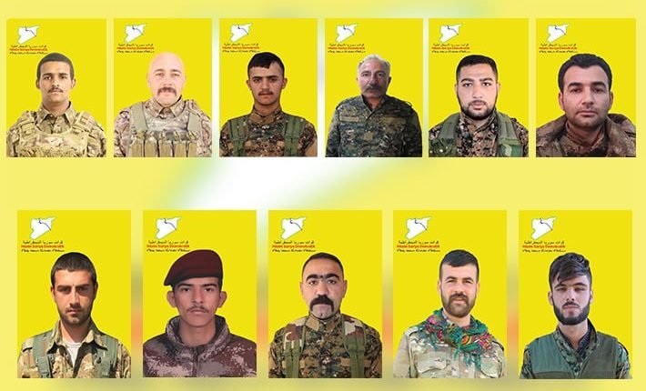 NAVENDA NÛÇEYAN – Navenda Ragihandinê ya QSD’ê bi daxuyaniyekê nasnameya 11 şervanên xwe eşkere kir ku di “Pêngava Gurzê Gelan” ya bersivdayîna êrişên çeteyên DAÎŞ’ê yên li ser Girtîgeha Sînaa ya Hesekê de şehîd bûne.