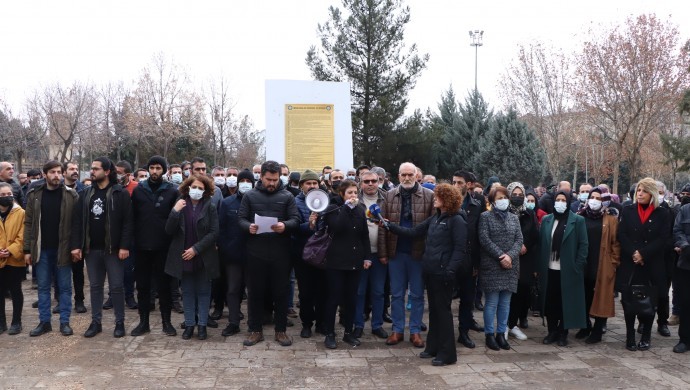 Pêkhateyên Platforma Ked û Demokrasiyê ya Amedê têkildarî daristana bîreweriyê ya ku dê li Çiyayê Kirklar a Amedê bi navê Serokê Giştî yê MHP’ê Devlet Bahçelî were çêkirin, daxuyaniyek da. Daxuyanî li pêşiya Bîrdariya Mafên Mirovan a li Parka Koşuyoluyê hat dayîn. Di daxuyaniyê de rêveberên DBP, HDP, TÎP, CHP û Partiyê Gelecekê jî amade bûn.
