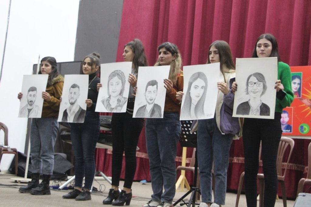 KOBANÊ – Merasîma bîranînê bi beşdarbûna bi dehan ciwan, şênî û malbatên şehîdan li Navenda Baqî Xido ya Çand û Hunerê ya Kobanê hat lidarxistin. Navend bi wêneyên 6 şehîdan hate xemilandin.
