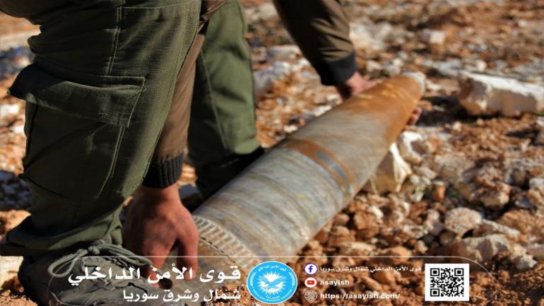 NAVENDA NÛÇEYAN – Li gorî malpera fermî ya Hêzên Ewlekariya Hundirîn a Bakur û Rojhilatê Sûriyê, Tîma Eyndizyariya Mayînan duh li taxa 4 kîlo ya li ser rêya Cerablûsê, topbeke neteqandî bêbandor kir.