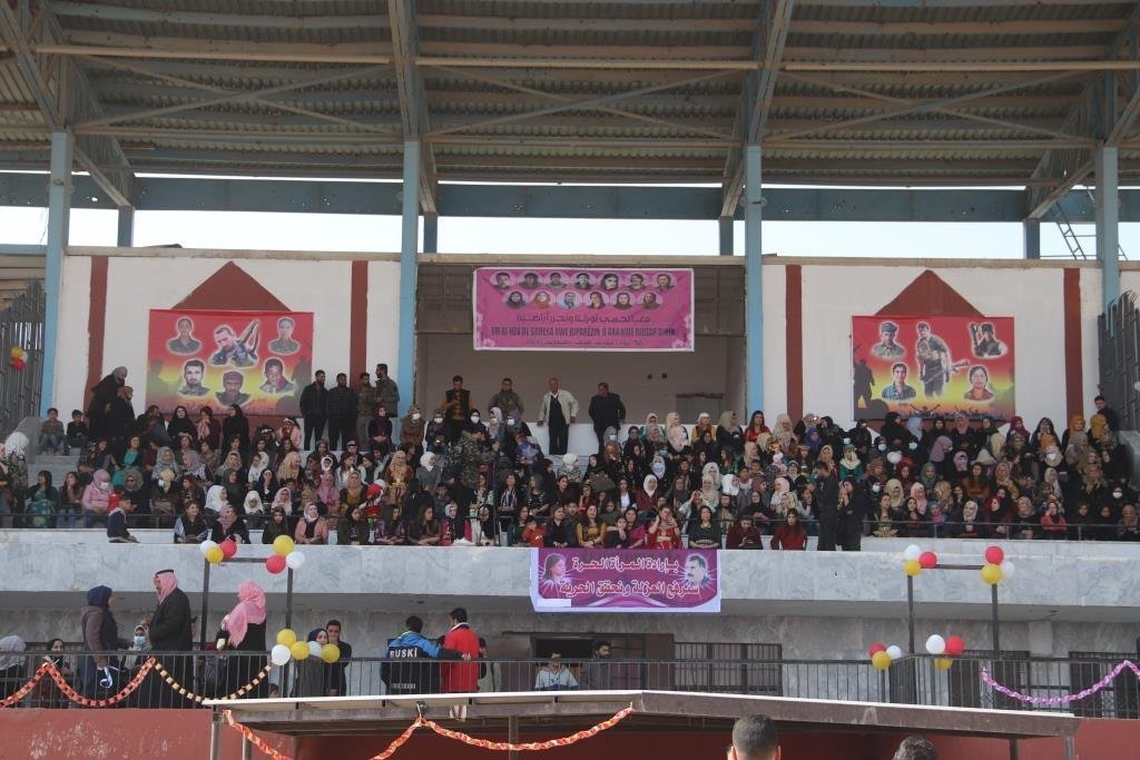 REQA – Bi sedan jinên Reqayê, endamên saziyên sivîl û leşkerî, Kombûna Jinan a Zenûbiya li Yarîgeha El-Eswed kom bûn, da ku tev li şahiya 8’ê Adarê bibin. Yarîgeh bi sembolên keleporên Kurd û Ereban hate xemilandin.