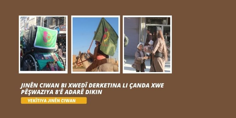 Îro ji aliyê Yekîtiya Jinên Ciwan ên bajarê Qamişloyê ve, pêşwaziya 8’ê Adarê bi şêwazekî çandî hate kirin. Jinên Ciwan bi siwarbûna ser hespan re, li nava bazarên Qamişloyê geriyan. Jinên ciwan çalakiya xwe ji Wargeha Ciwanan di demijmêra 4:00’an de destpêkirin. Di heman demê de jinên ciwan yên ku cihê xwe di nava vê çalakiyê de girtibûn, li nava sûkê belavok belav kirin, naveroka belavokên ku hatine belav kirin wate û rastiya 8’ê Adarê bû.