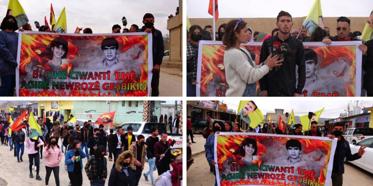 Meşa bi Meşale ji ber avahiya Meclisa Gel a Borikê dibin dirûşmeya “Bi ruhê ciwantî emê agirê Newrozê geşbikin” her wiha bi bilindkirina posterên Rêber Ocelan û alên Yekitiya Ciwanên Êzidî heta ber avahiya Şaredariya Gel dewamkir. Li vir li ser navê ciwanan daxuyanî hate dayîn.
