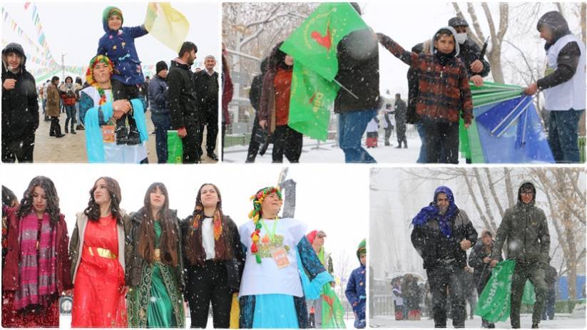 WAN – Newroza 2022’yan bi dirûşma “Dem dema serkeftinê ye” li Keleha Wanê tê pîrozkirin. Ligel berfa ku şevê din ve dibare gel kom bi kom ber bi qadê ve diherike. Gel wekî her sal bi cilên xwe yên kurdewarî tevlî pîrozbahiyê dibin. Girseya ku li qadê jî li hemberî muzîkê govend digerînin. Qada pîrozbahiyê bi alên kes, sor û zer hat xemilandin û her wiha pankarta “Dem dema serkeftinê ye” û “Dem dema azadiya Jinê ye” hat daliqandin.